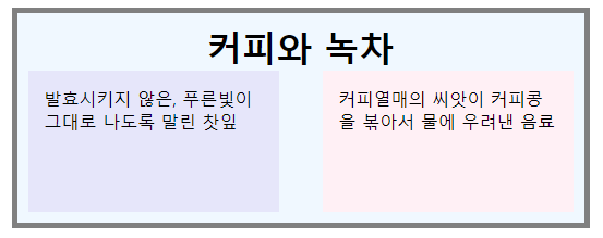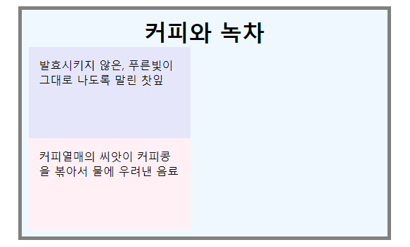 하지만 float을 가진 부모(container)는 자식(green,coffe)이 빠져나갔지만 여전히 공간을 유지시켜주기 위해